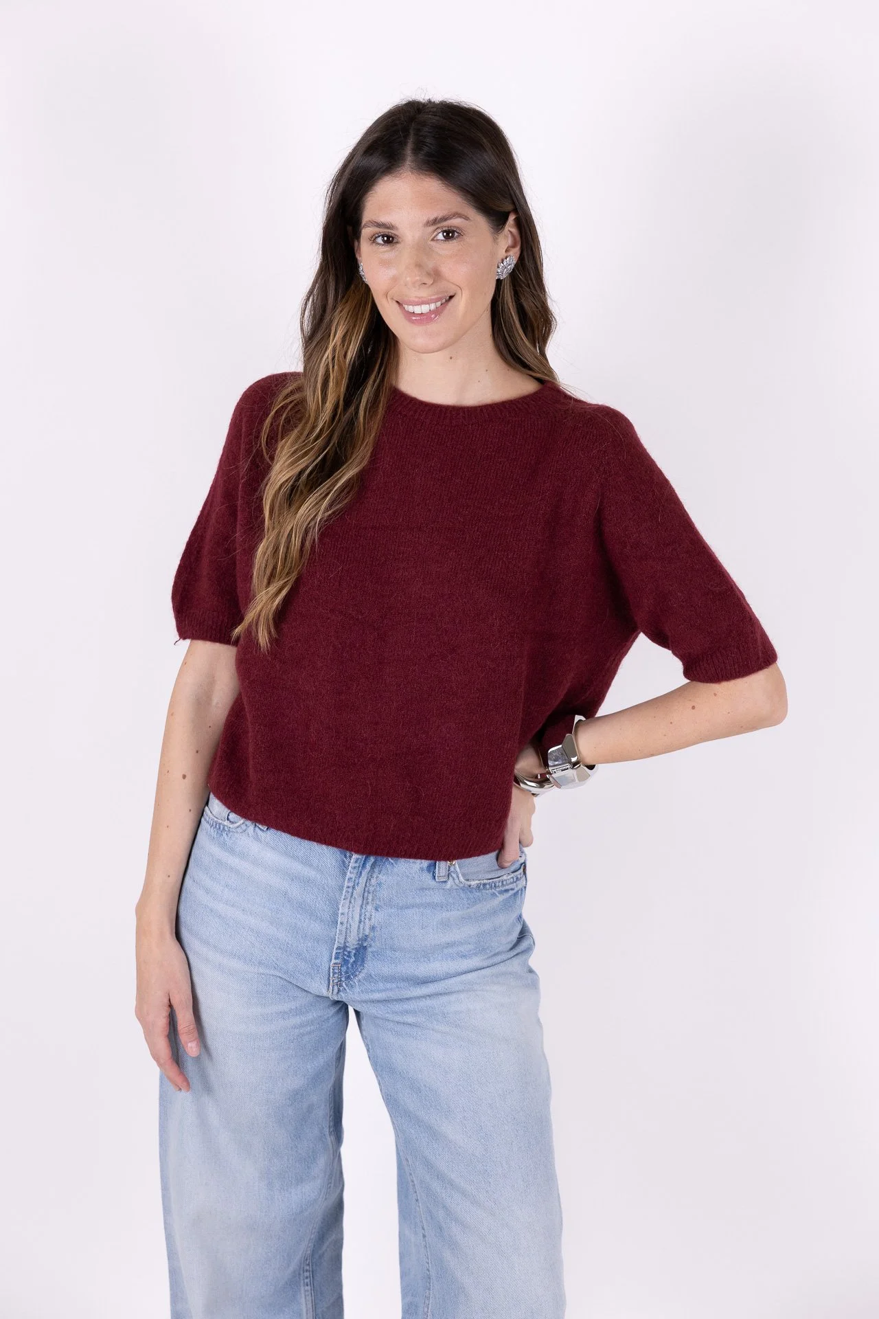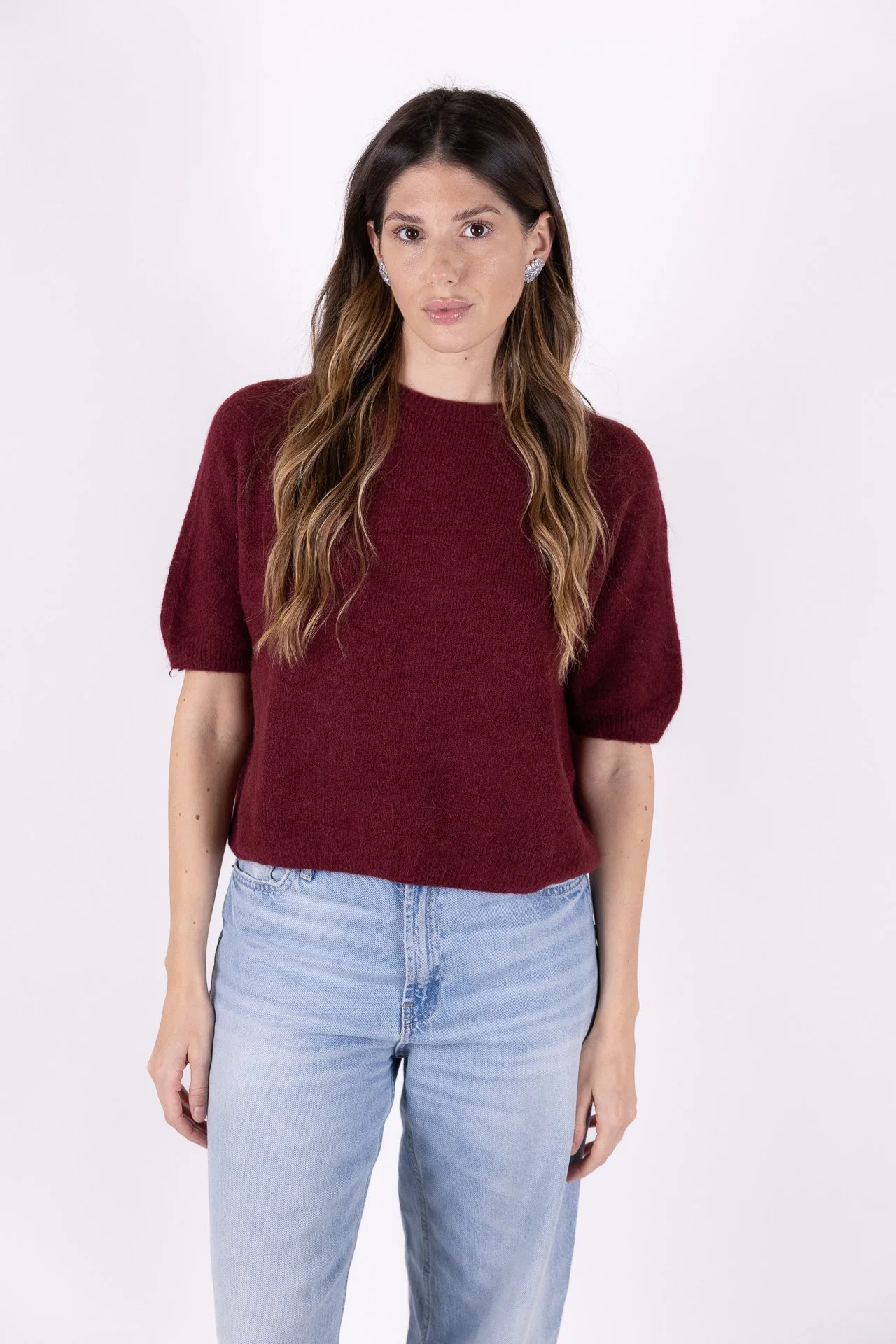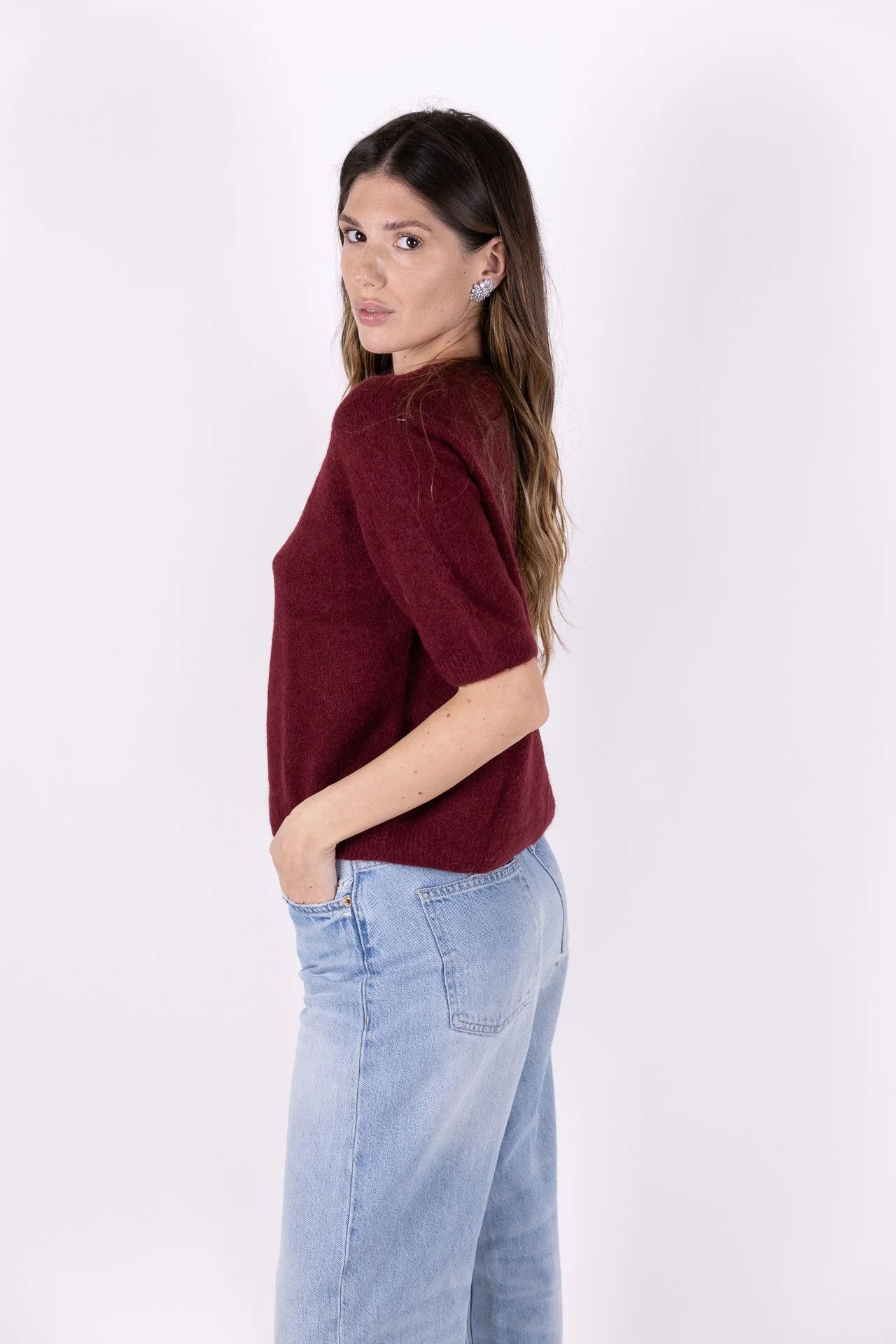 PULLOVER BORDEAUX MANICHE CORTE