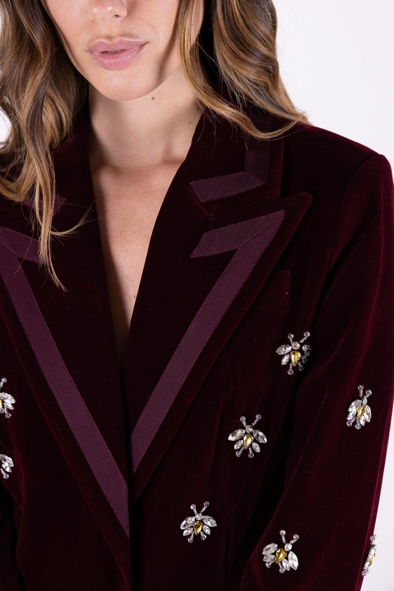 GIACCA VELVET BORDEAUX CON APPLICAZIONI