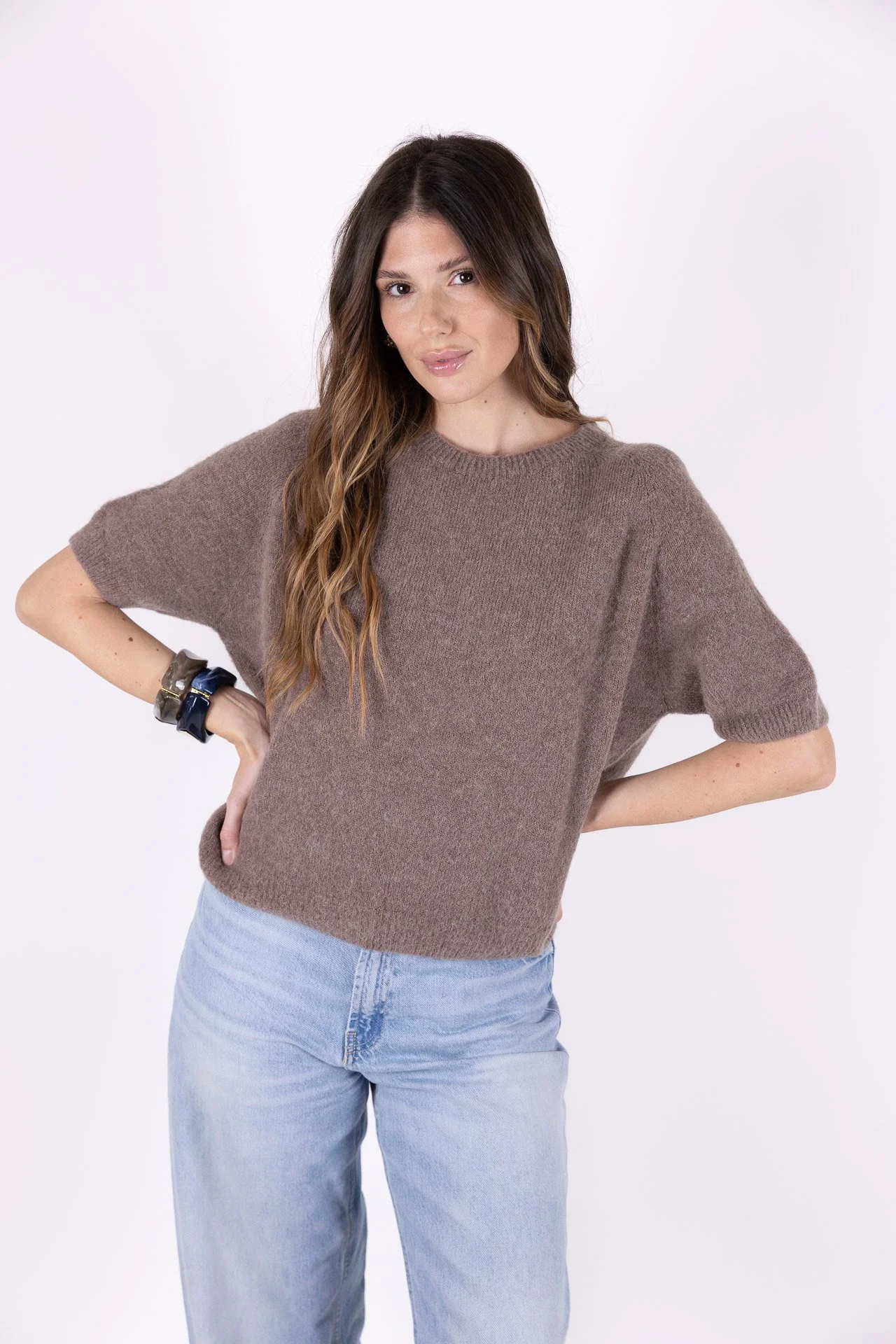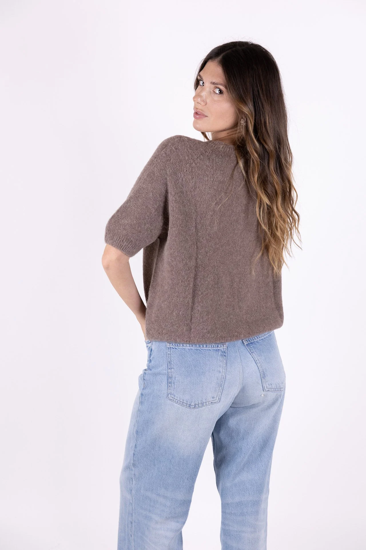 PULLOVER TAUPE MANICHE CORTE
